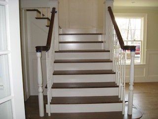 Double Bullnose, Quarter sawn stair case with Minwax 2 prt Provincial and 1 prt English
